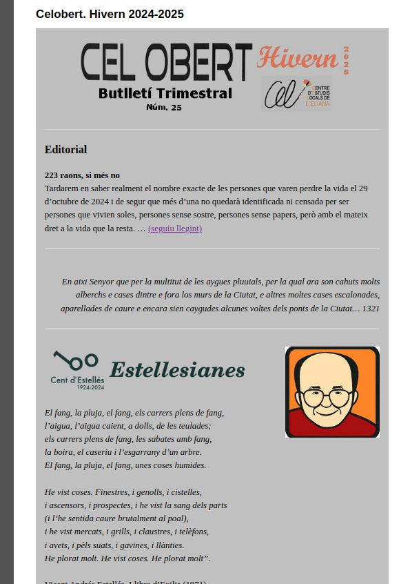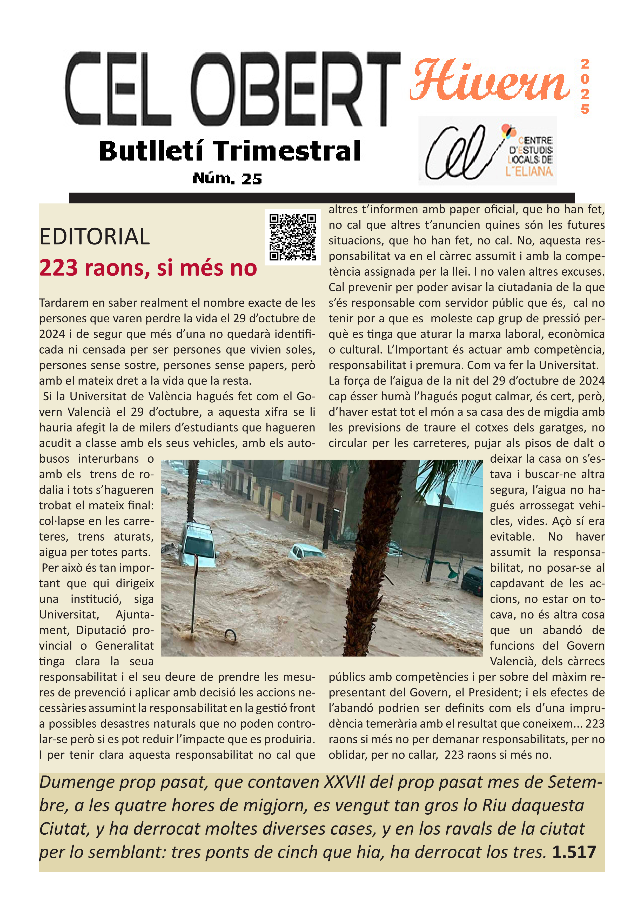 No podem oblidar-ho. Però, a més, ara mateix el nostre poble s’enfronta a una de les tragèdies més dures de la seua història. Per això, el nostre número del Cel Obert d’hivern és pràcticament un especial dana.