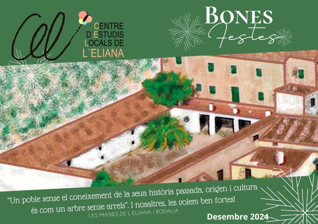 El CEL es complau a comunicar-vos que ja podeu accedir en línia al llibre «Les masies de l’Eliana i la rodalia», de Vicent Rubio, Vicen Córcoles, David Gordillo i M. Júlia Hernandis, editat pel CEL amb la col·laboració i el suport econòmic de l’Ajuntament de l’Eliana.