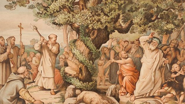 Per exemple, potser podem cercar l’arbre de Nadal en la tradició escandinava: en moltes mitologies trobem un arbre sagrat, símbol de la fertilitat i la vida o, fins i tot, tot el món és un gran arbre sagrat, com l’arbre de l’Univers dels escandinaus. Diuen que, al segle VII, sant Bonifaci, que havia arribat a aquelles terres per evangelitzar-les, va arrancar el roure de Tor (ja sabeu com se les gasten alguns sants amb els costums pagans) i amb la fusta va edificar el primer monestir en aquelles terres; altres diuen que, al lloc on hi havia el roure, va plantar un avet que simbolitzaria l’amor de Déu pels homes i, per la seua forma triangular, la Santíssima Trinitat.