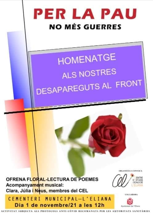 La situació de la pandèmia a l’Eliana ens obliga a suspendre l’acte.