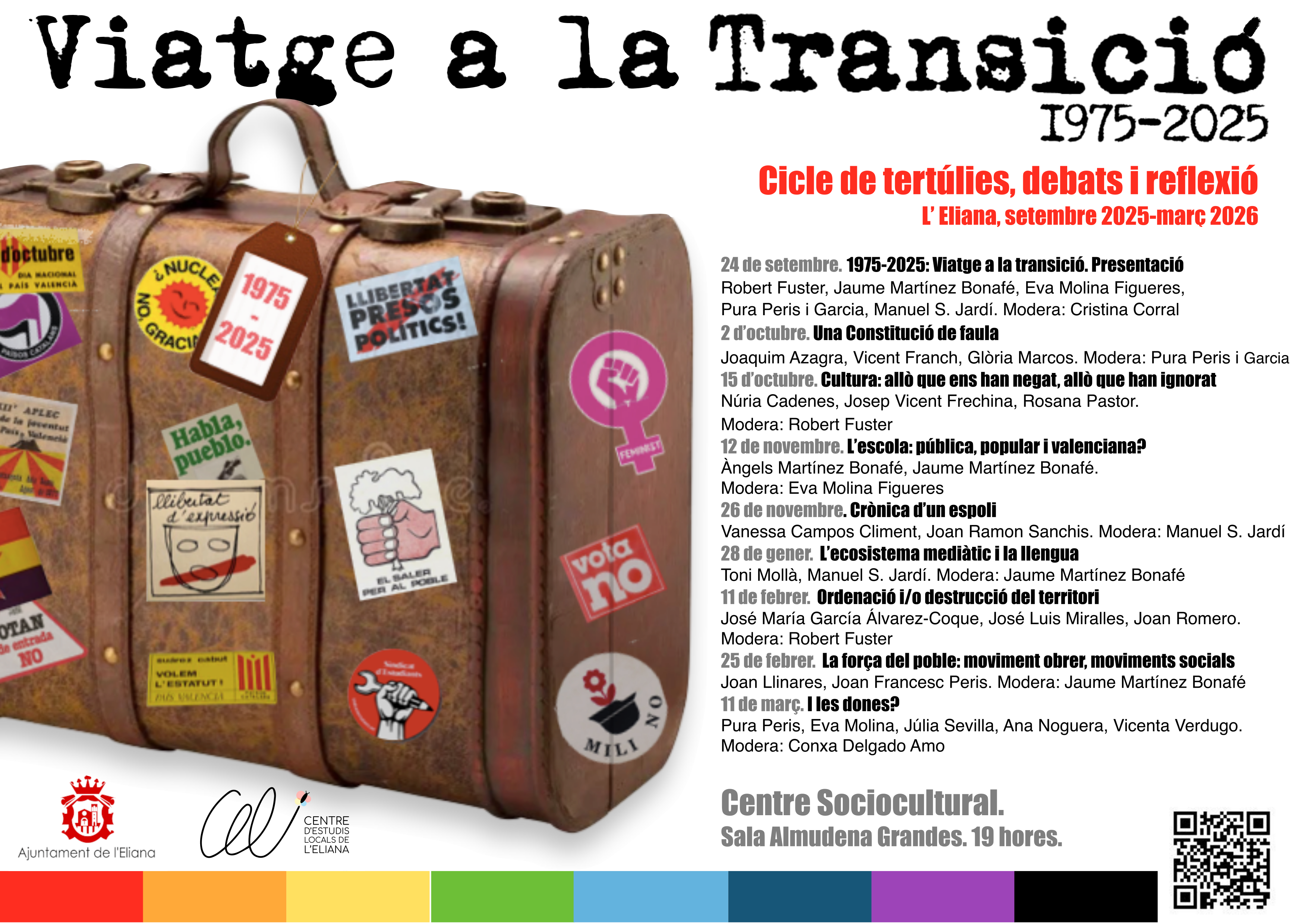 Hem organitzat aquest cicle com una sèrie de debats que confiem que ens permetran fer una reflexió coŀlectiva i compartida a prop de determinats aspectes de la transició. Des del context històric en què es desenvolupa fins a les limitacions qüestionables que representen un entrebanc per al desenvolupament de l’estat i la plena satisfacció de la ciutadania amb el sistema democràtic. Factors amenaçats per la pervivència de normatives difícilment enquadrables en un estat ajustat a les exigències del segle XXI.